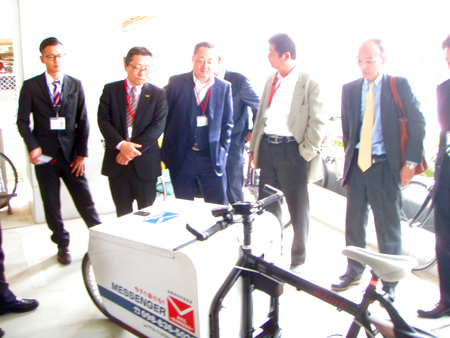 (那覇市文書集配業務で使用しているカーゴバイクの視察)