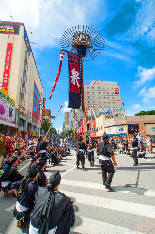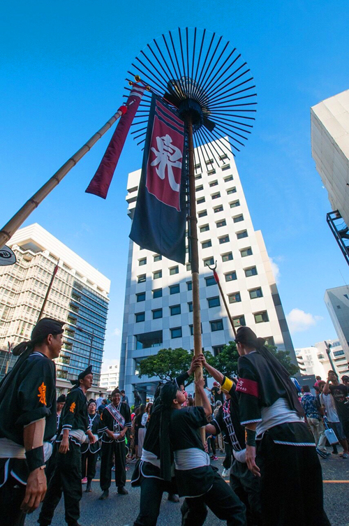 沖縄中部はエイサーが有名ですが、那覇は何といっても旗頭!
