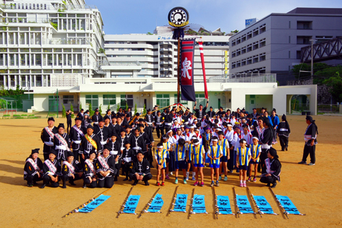 (開南小学校での旗揚げ。今年は一番目に下から上げさせていただきました。)