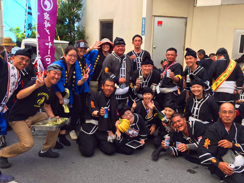 そして、国際通りでの旗頭行列の最後は、泉崎恒例の写真撮影!