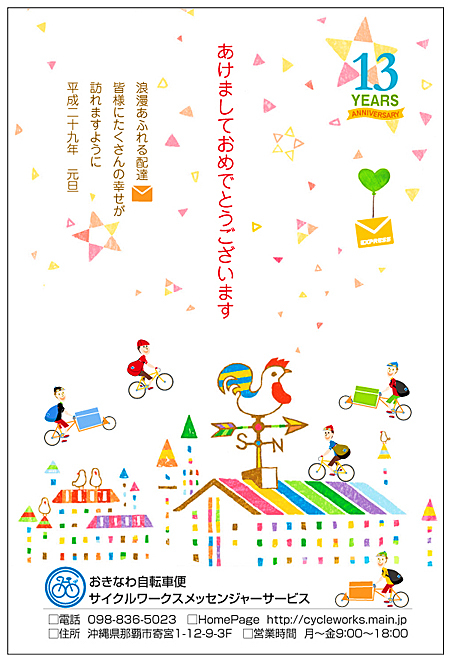 □ 謹賀新年2017 2017年1月1日 最終更新日時 : 2025年8月20日 Cycle Works◎サイクルワークス合同会社◎-沖縄メッセンジャーサービス(バイク便/緊急配送/当日配達/信書便/検体配送)-Facebook